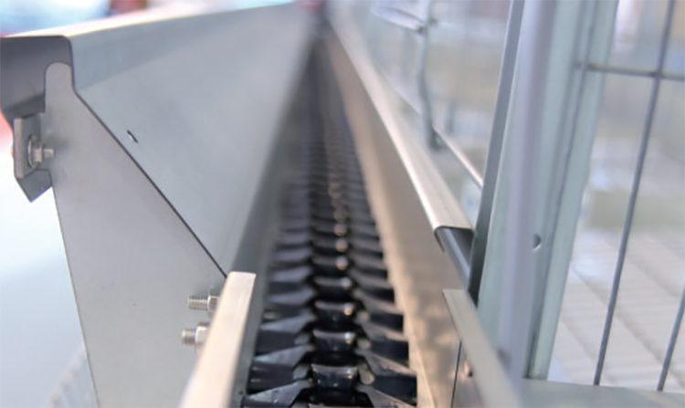 出料口安裝有勻料器、趕雞棒、首尾段殘料回收裝置,減少飼料浪費且喂料均勻,喂料量可根據日齡、雞品種進行調節,保證雞營養充足、均衡。